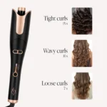 تحتوي أداة تجعيد الشعر على 4 إعدادات لدرجة الحرارة بالإضافة إلى زر تدوير يمين ويسار، حتى تتمكني من تصفيف شعرك بسهولة بالطريقة التي تريدينها بالضبط. بهذه الطريقة، تضمنين تجعيدات مثالية تدوم طويلاً تناسب نوع شعرك.