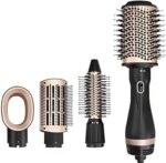 -يأتي الجهاز عادةً مع أربعة رؤوس مختلفة، تشمل فرشاة حرارية، ومشط حراري، وفوهة لتنشيف الشعر، وفرشاة ناعمة للتسريح، مما يغنيكِ عن الحاجة لأجهزة تصفيف متعددة