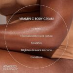 - بشرة مشرقة – يساعد كريم فيتامين سي للجسم من Advanced Clinicals على تحسين مظهر البشرة المتقدمة في السن ولون البشرة غير المتساوي. يساعد فيتامين سي على تعزيز لون البشرة المتساوي، بينما يساعد أيضًا على تحفيز إنتاج الخلايا للمساعدة في تحسين مرونة الجلد وشدته. يساعد كريم فيتامين سي للجسم وغسول الوجه المتطور المشرق على تحسين مظهر البشرة المتغيرة اللون والبقع العمرية والنمش وأضرار أشعة الشمس الناتجة عن البقع الشمسية وملمس الجلد الخشن وفرط التصبغ وندبات حب الشباب.