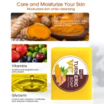 - إشراقة مشرقة: بفضل قوة الكركم، يعمل هذا الصابون على تفتيح البشرة وتوحيد لونها بفعالية. استعدي لبشرة مشرقة ومشرقة.