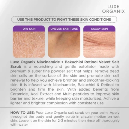 - الفوائد: تنظيف عميق وتقشير لطيف للبشرة، مما يجعلها ناعمة وحريرية الملمس، ويساعد على تفتيح لون البشرة وتوحيد لون