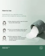 - بعد التنظيف، استخدمي الجانب المنقوش من الوسادة لتنظيف الوجه على طول نسيج الجلد، مع تجنب مناطق الشفاه والعين.
