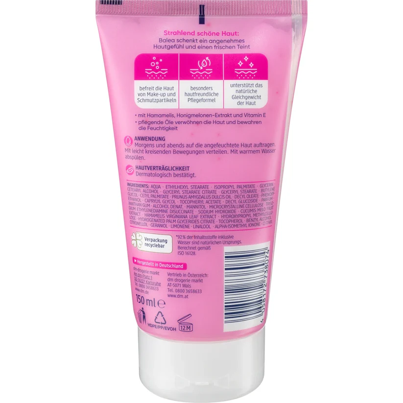 يقوم كريم Balea Gentle Wash بتنظيف وتنشيط البشرة الجافة والحساسة – كتحضير لطيف للعناية اللاحقة.