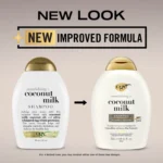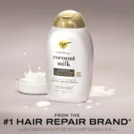 رطبي شعرك واسترجعي حيويته مع شامبو OGX Nourishing + Coconut Milk. يمنحك هذا الشامبو من العلامة التجارية رقم 1 لإصلاح الشعر* نعومة فورية بعد الاستخدام الأول. تحمي تركيبتنا الجديدة والمحسنة الشعر من الفقد المفرط للدهون والبروتينات مما يسبب التجعد والتكسر. الآن مع تقنية Lipi Pro Shield™، يوفر هذا الشامبو المرطب حماية مضاعفة للبروتين والدهون** لشعر صحي. تعمل تركيبة حليب جوز الهند على تليين خصلات الشعر للحصول على شعر ناعم وصحي بينما تترك رائحة جوز الهند الكريمية والخوخ الأبيض وزبدة الشيا الشعر برائحة لا تقاوم. ضعيه على الشعر المبلل ودلكي حتى يتكون رغوة ثم اشطفيه واتبعيه ببلسم OGX. شامبو مُصمم بعناية ليكون خاليًا من المواد الخافضة للتوتر السطحي الكبريتية والبارابين والفثالات والبلاستيك الدقيق والأصباغ.