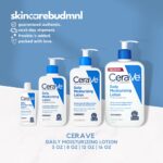 لوشن الترطيب اليومي CeraVe مرطب خفيف الوزن وخالي من الزيوت يحتوي على ثلاثة سيراميدات أساسية تحبس رطوبة البشرة وتساعد على استعادة الحاجز الواقي للبشرة.