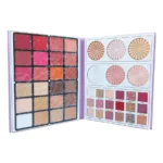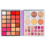– تحتوي على 18 ظل جفون و 6 أقلام تمييز و 24 لون أحمر شفاه غير لامع.