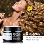 - القوة من الداخل: وداعًا للتقصف! يعمل هذا القناع الغني بالبروتين على تقوية جذور الشعر وتحسين تساقطه، مما يعزز نموه بشكل أكثر كثافة وصحة.