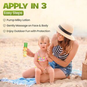 مقاوم للماء والعرق، يبدأ مفعول هذا اللوشن الواقي من الشمس فورًا بعد الاستخدام. سواء كان طفلكِ على الشاطئ، أو في الحديقة، أو يلعب في الفناء الخلفي، تضمن إنفانت بقاء بشرته محمية ورطبة طوال اليوم. حماية واسعة من الشمس بعامل حماية ٥٠ PA++++. مناسب للوجه والجسم. خفيف الوزن وسريع الامتصاص. خالٍ من المواد الكيميائية القاسية والمهيجات الصناعية. رائحة لطيفة، آمن لجميع أفراد الأسرة.