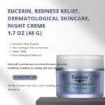 كريم Eucerin Redness Relief Night Cream يقلل من الاحمرار للبشرة الحساسة والمعرضة للاحمرار ليلاً. غني بالليكوكالكون، وهو مستخلص مهدئ للبشرة من جذر عرق السوس. خالٍ من العطور والصبغات ولا يسبب انسداد المسام. تبدو البشرة أكثر نعومة وقوة وشدًا وشبابًا.