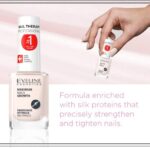 Eveline Cosmetics Nail Therapy Maximum Nail Growth Quickener هو برنامج احترافي مكثف للغاية للعناية اليومية بالأظافر، حيث يوفر تقوية فعالة ونموًا أقصى للأظافر. تركيبة غنية ببروتينات الحرير التي تقوي الأظافر وتشدها بدقة. بلسم مصمم للأظافر الضعيفة والرفيعة والهشة، يجعل الأظافر طويلة وجميلة في غضون 10 أيام من العلاج.