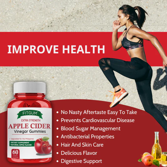FITGUM Extra Strength Apple Cider Vinegar بنكهة التفاح، 60 علكة قابلة للمضغ.