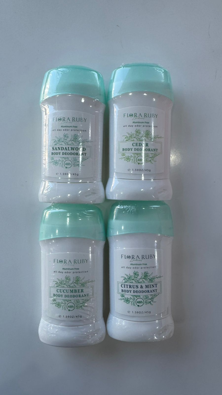 مزيل عرق الجسم فلورا روبي (Flora Ruby Body Deodorant). وهو منتج عضوي طبيعي مصمم لتوفير حماية طويلة الأمد من الرائحة دون استخدام الألومنيوم.