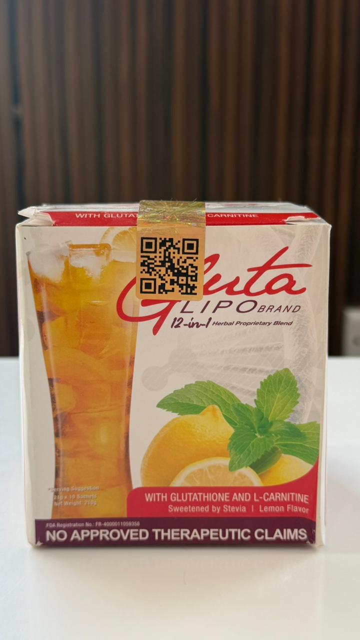 عصير جلوتا ليبو 12 في 1 (Gluta Lipo 12-in-1 Juice). وهو مشروب فلبيني شهير يُستخدم كمكمل غذائي يجمع بين فوائد تفتيح البشرة، التنحيف، وطرد السموم من الجسم (ديتوكس).