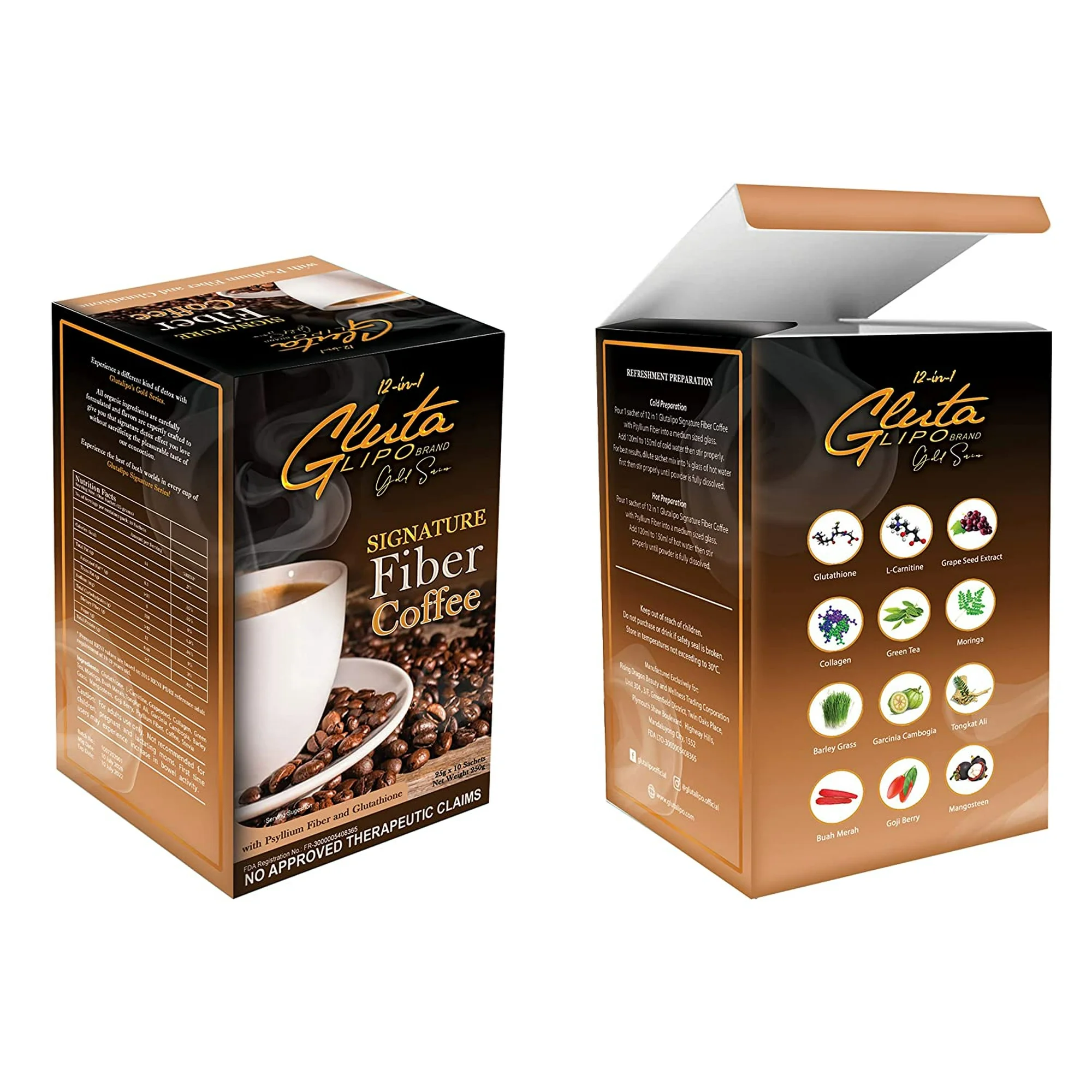 GlutaLipo 13 in 1 Detox Slimming Coffee Mix, 10 Sachets