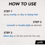 كيفية عمل موجات الشاطئ: رش منتج الشعر بالتساوي على الشعر الجاف أو الرطب، ثم قم بتجعيده أو تصفيفه حسب الرغبة، ثم جففه بالمجفف أو دع الريح تقوم بالباقي.
