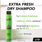 شامبو جاف got2b Extra Volume 200ml هو شامبو جاف مصمم لتجديد شعرك وتنظيفه بين الغسلات. تركيبة نباتية وخالية من السيليكون لها رائحة حمضيات منعشة تدوم طويلاً، ولا تترك أي بقايا بيضاء (بعد تمشيطها) وهي مثالية لإضافة المزيد من النضارة والحجم أو الاستخدام أثناء التنقل.