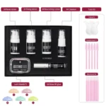 -تُستخدم مجموعة رفع الرموش فقط للرموش. إذا دخلت المحاليل في عينيك أو تسببت في تهيجهما، اغسلي عينيك على الفور بالماء البارد لمدة 15 دقيقة واستشيري الطبيب.