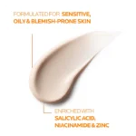 - يحتوي على مواد فعالة جلدية [حمض الساليسيليك + النياسيناميد + الزنك + الإيرليسيوم].
