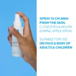 - رذاذ مناسب للوجه والجسم لعلاج مجموعة واسعة من تهيجات الجلد الشائعة بما في ذلك الحروق، وطفح الحفاضات، وجدري الماء، والحبل السري، وما بعد التقشير، والليزر والجراحة