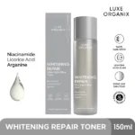 تونر لوكس أورجانيكس لتبييض البشرة وإصلاحها خفيف للغاية مصنوع من فيتامين ب3 القابل للذوبان في الماء والمعروف بقدرته على تقليل ظهور عيوب البشرة والمسام الواسعة، مع موازنة مستويات الزيوت الطبيعية للحصول على بشرة خالية من اللمعان. يساعد على تحسين حاجز البشرة، ويمنع البشرة من فقدان الماء ويحميها من الملوثات والسموم، مما يجعله لطيفًا على البشرة. يعزز ملمس البشرة ونعومتها مع تقليل فرط التصبغ الناتج عن أضرار أشعة الشمس مما يمنح البشرة لون بشرة أفتح وأكثر تناسقًا.