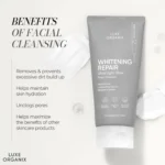 - منظف الرغوة اللطيف Luxe Organix Whitening Repair مصنوع من النياسيناميد ومستخلص جذر عرق السوس لتقليل ظهور فرط التصبغ والمسام الواسعة والزيوت الزائدة. يفتح البشرة ويوحد لونها ويتركها متوهجة ومنتعشة وطبيعية.