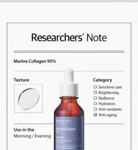 هذا السيروم من ماري آند ماي غني بنسبة 95% من الكولاجين البحري منخفض الجزيئات لتقليل التجاعيد دون ترك ملمس دهني. يلتزم هذا السيروم بمفهوم الجمال النظيف للعلامة التجارية من خلال تقليل المكونات إلى الحد الأدنى وتجنب التجارب على الحيوانات.
