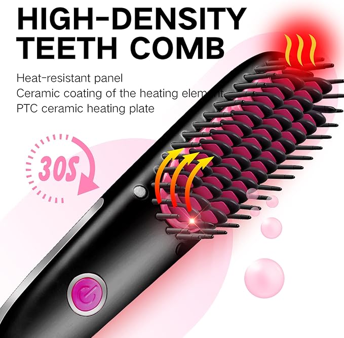- تسخين سريع للشعر المستقيم: يستخدم هذا “المشط الصغير” مشط أسنان عالي الكثافة يمكنه العناية بكل مجموعة شعر وزيادة منطقة التلامس مع لوحة حرارية من السيراميك PTC، مطلية بالسيراميك، يمكن للفرشاة أن توفر حرارة أكثر استقرارًا وموحدة. مما سيقلل من الضرر الحراري لشعرك. ويمكن لـ “مشط التسخين” أن يمر عبر شعرك بسلاسة أكبر دون أن ينكسر أو يسحب.