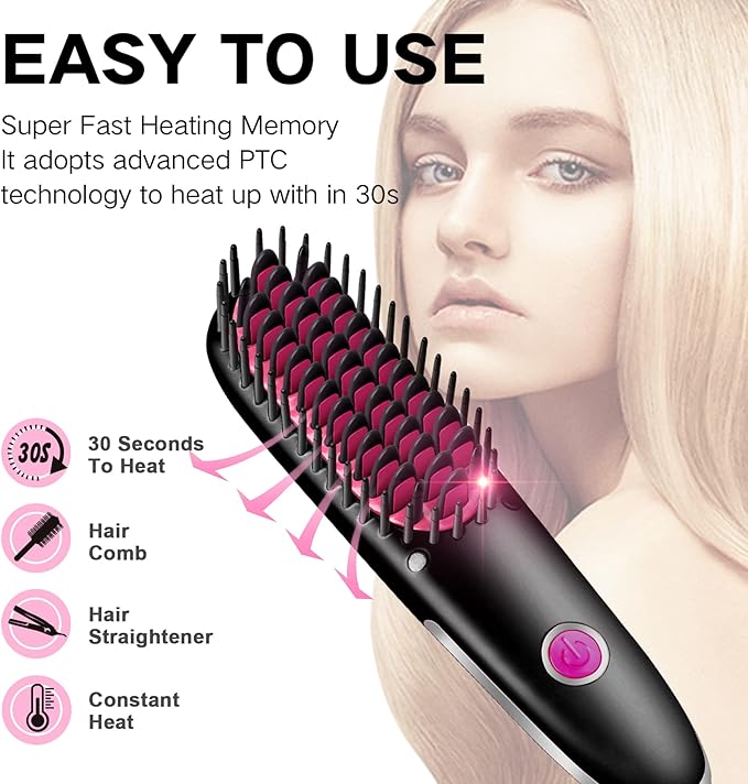 Mini Straight Hair Comb with PTC Heating Technology, 7 Inch Brush