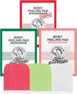 Mom’s Bath Recipe Body Peeling Pad Trouble Care 25ml هو حل تقشير مبتكر مصمم خصيصًا لمعالجة حب الشباب في الجسم. يتميز هذا المنتج براحته وسهولة استخدامه من خلال اتباع نهج مكون من 3 خطوات. في البداية، تتميز هذه الوسادة بتركيبة تمزج بين خصائص التقشير لـ AHA وBHA مع الفوائد المهدئة للشاي الأخضر والماديكاسوسيد. يضمن هذا المزيج الفريد أنه بينما يتم تجديد الجلد من خلال التقشير، فإنه يتم أيضًا تهدئته بشكل فعال لمنع المزيد من الالتهاب أو التهيج. لذلك، من ناحية، تعمل هذه الوسادات على تقشير الجلد، وتعمل بجد على إزالة الشوائب وخلايا الجلد الميتة. تتميز الوسادة ذات الوجهين بجانب أكثر نعومة لتكوين الرغوة وجانب شبكي للتقشير المكثف.