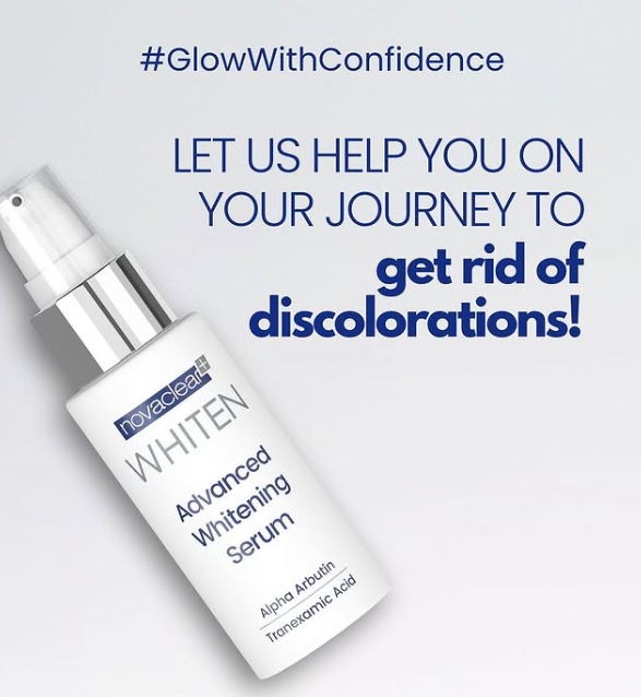 نوفاكلير أدفانسد وايتنينغ سيروم�مع الفا أربوتين الفعال وحمض الأزيليك وفيتامين C و تيترابيبتايد-30 مع خصائص تنظيم إنتاج الميلانين. يعمل المصل على توحيد لون البشرة ، ويقلل من ظهور فرط التصبغ الموجود ، ويحمي من تكوين تصبغات جديدة. يبطئ عملية الشيخوخة.