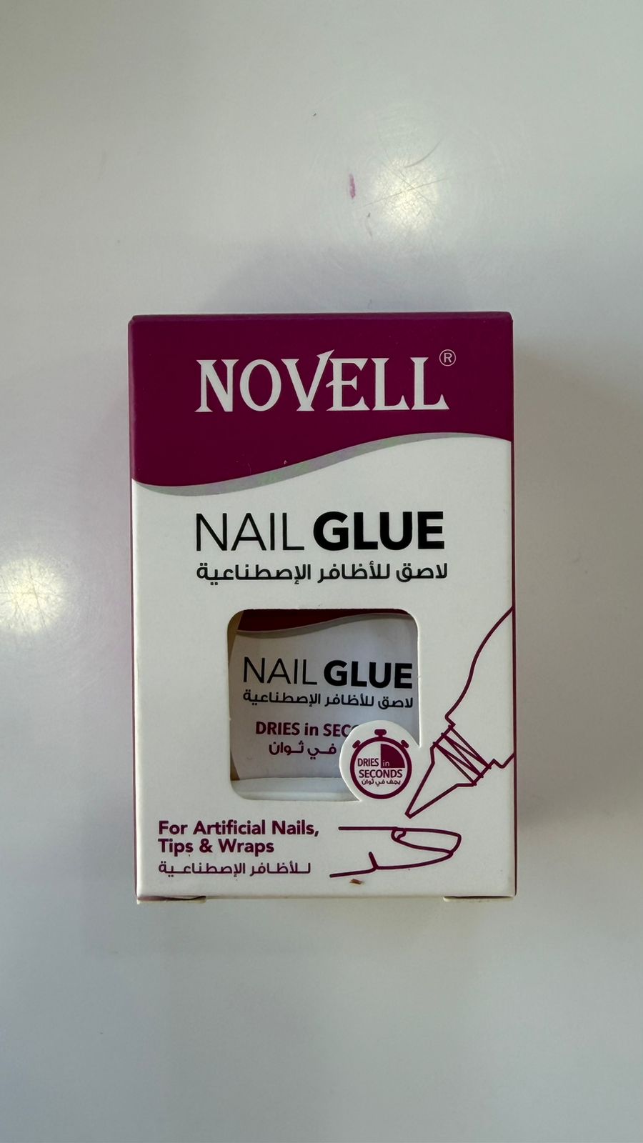 لاصق أظافر نوفيل (Novell Nail Glue)، وهو غراء قوي مصمم خصيصاً لتثبيت الأظافر الصناعية، الأطراف، والأغلفة.