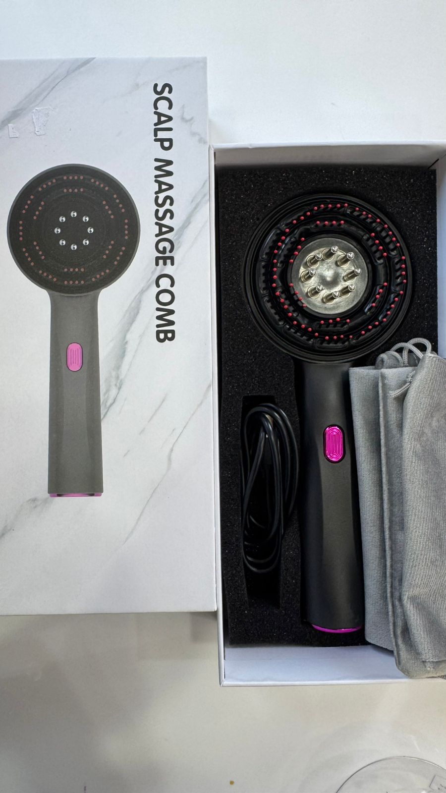 مشط تدليك فروة الرأس الذكي (Scalp Massage Comb). وهو جهاز محمول مصمم لتعزيز صحة الشعر وتوفير تجربة استرخاء منزلية تشبه صالونات العناية.
