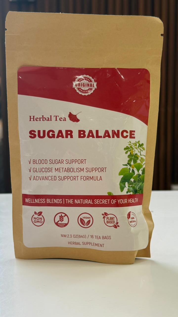 شاي الأعشاب لتوازن السكر (Sugar Balance Herbal Tea)، وهو مكمل عشبي طبيعي مصمم لدعم مستويات السكر الصحية في الدم.
