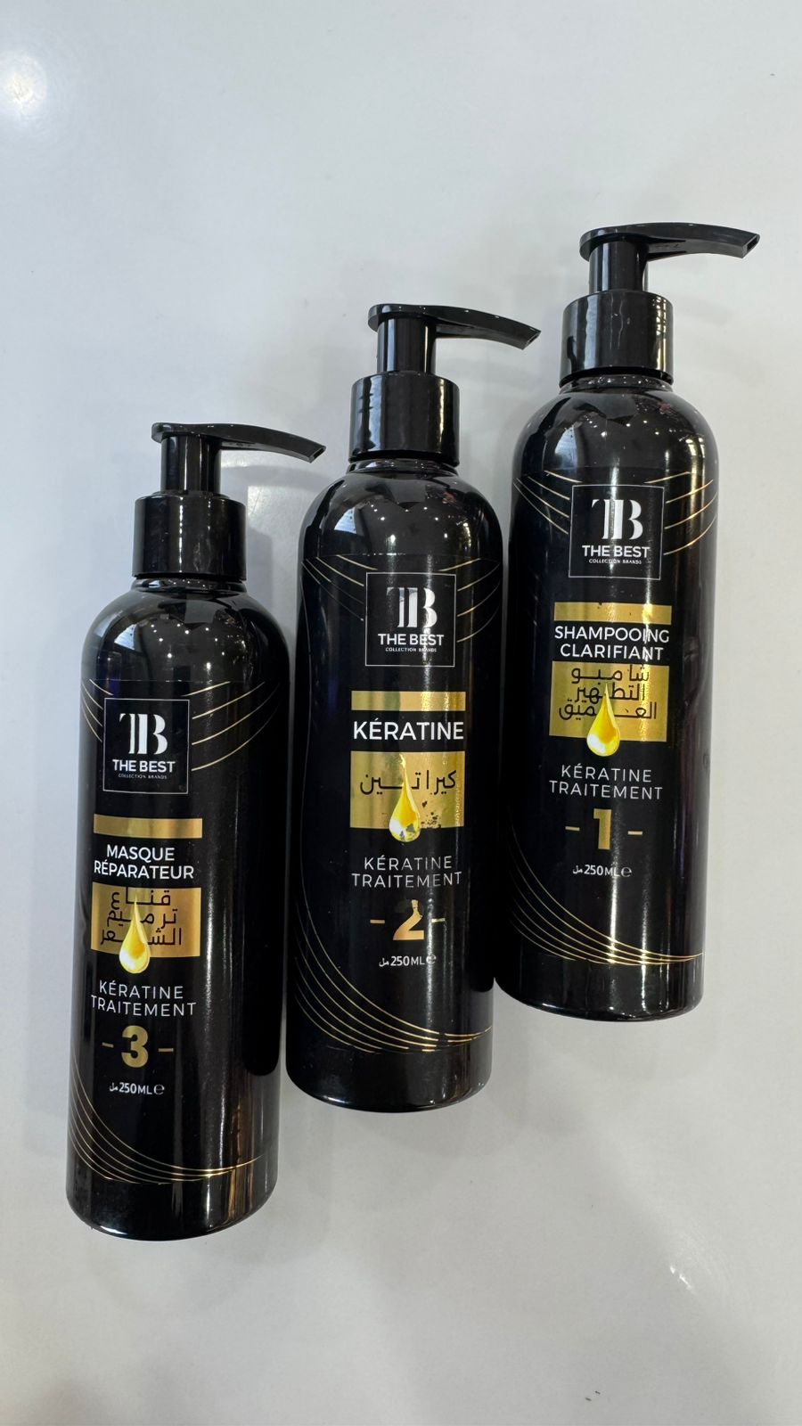 - رقم 2: علاج الكيراتين (Keratine Traitement): هو المنتج العلاجي المركز الذي يتم تطبيقه لإعادة بناء الشعر وإصلاحه.