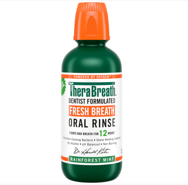 سول الفم ثيرا بريث (TheraBreath) بنكهة نعناع الغابات المطيرة هو غسول فم مصمم من قبل طبيب أسنان للمساعدة في مكافحة رائحة الفم الكريهة وتوفير نفس منعش يدوم طويلاً.