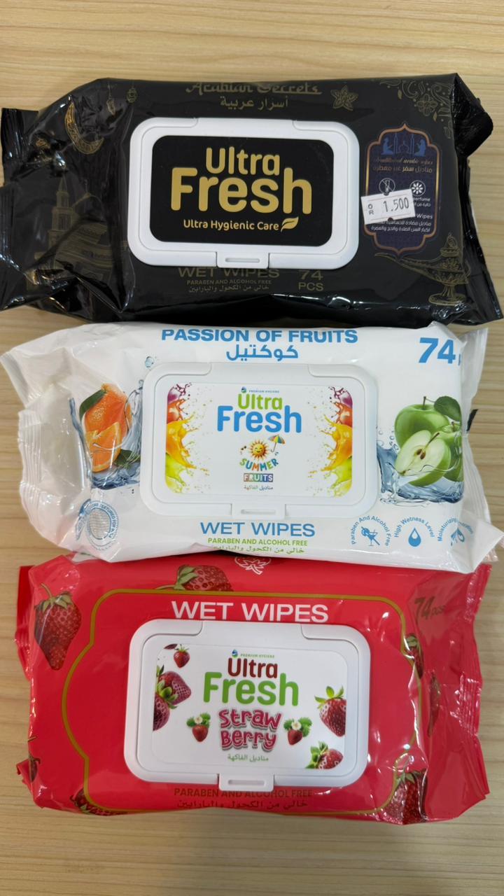 مناديل مبللة من ماركة ألترا فريش (Ultra Fresh Wet Wipes).