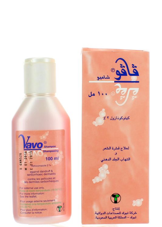 شامبو فافو (Vavo Shampoo)، وهو مستحضر طبي متخصص في علاج مشاكل فروة الرأس بتركيبة فعالة.