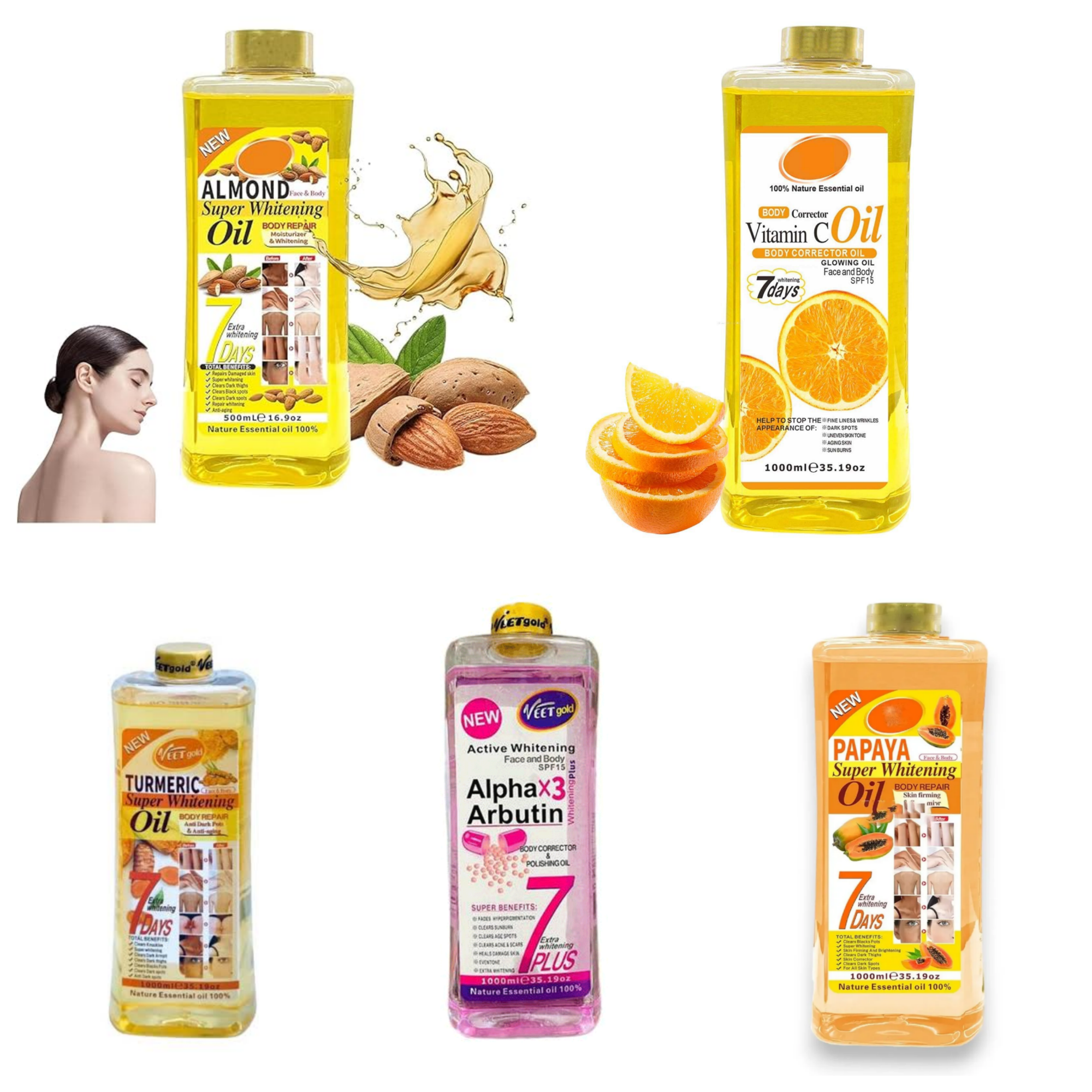 زيت التبييض فيت جولد. تم تركيبه بمكونات طبيعية قوية، يعمل زيت التبييض لدينا على تغذية البشرة وترطيبها بعمق، مع تقليل البقع الداكنة بشكل فعال وتعزيز بشرة متجانسة ومشرقة.