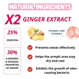 – المكونات: النياسيناميد؛ الجلوتاثيون؛ خلاصة الزنجبيل؛ ملح الألومنيوم؛ الماء، الإيثانول، أوكسي كلوريد الألومنيوم، هيدروكسي إيثيل السليلوز