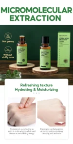 🌿 [كيفية الاستخدام] بعد التنظيف، ضعي كمية مناسبة من الجوهر بالتساوي على منطقة حب الشباب، وتجنب منطقة العين، ودلكي بلطف حتى يمتص. استخدميه في الصباح والمساء يوميًا.