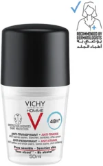 فيتشي هوم مزيل العرق المضاد للبقع لمدة 48 ساعة يوفر حماية فعالة ضد التعرق والرائحة مع تقنية مبتكرة “لحماية القمصان”. هذه التركيبة الشفافة والمختبرة من قبل أطباء الجلد تمنع ظهور البقع الصفراء والعلامات البيضاء وحلقات العرق وتيبس الأقمشة، مما يضمن بقاء ملابسك نظيفة ومنتعشة. غني بماء فيشي البركاني والمكونات المضادة للتعرق، ينظم العرق لمدة تصل إلى 48 ساعة مع تهدئة وحماية البشرة من التهيج. خالٍ من الكحول ومضاد للحساسية، يقدم هذا المزيل عناية موثوقة ولطيفة للاستخدام اليومي.